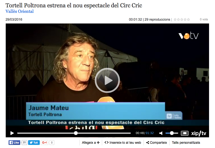 Tortell Poltrona i Circ Cric estrenen Grinyols Posted on 1 d'abril de 201621 de setembre de 2016 by Lourdes Carracedo