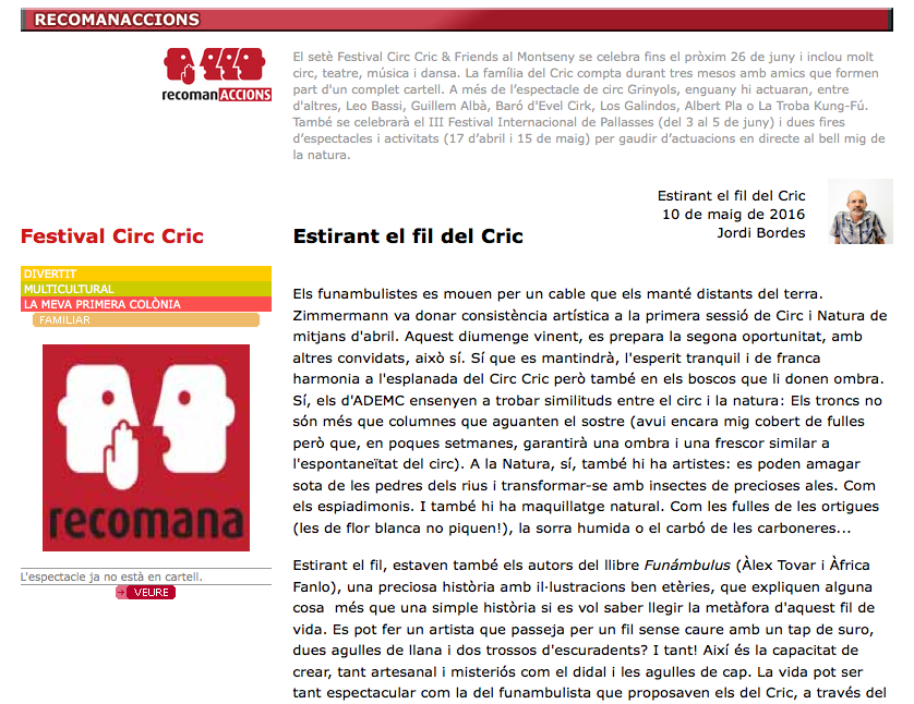 Els grinyols del Montseny es colen al Circ Cric Posted on 30 de març de 201630 de març de 2016 by Lourdes Carracedo